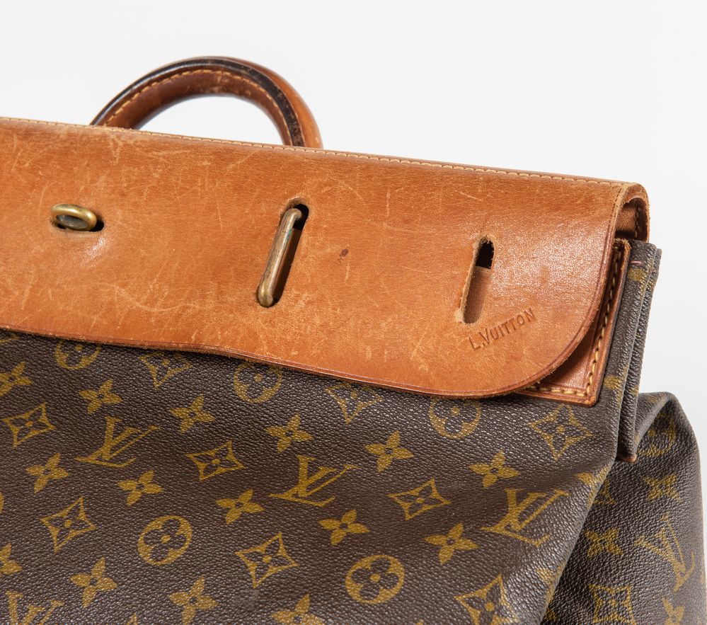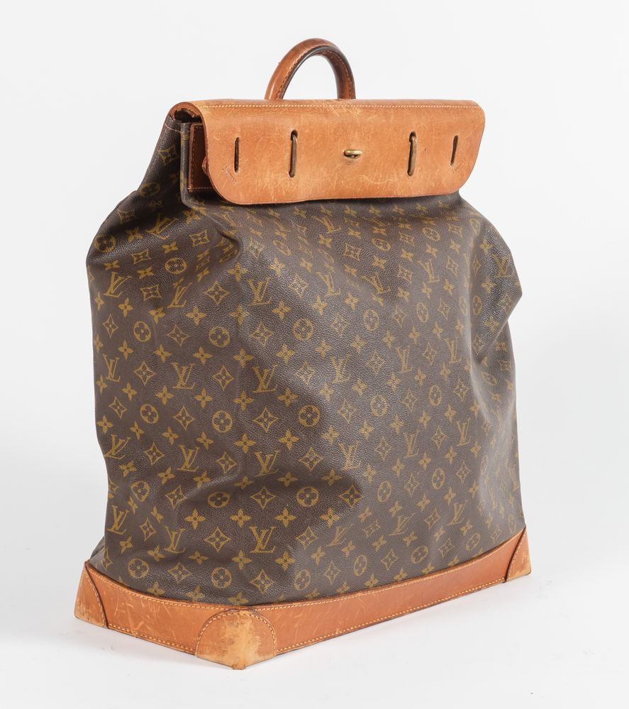 LOUIS VUITTON Borsa da viaggio modello Steamer in tela monogram con rifiniture in pelle e interno in tela. Cm 53x45x21. Reca marchi LV, L. Vuitton e codice di riferimento prodotto. (Mancanze e difetti)