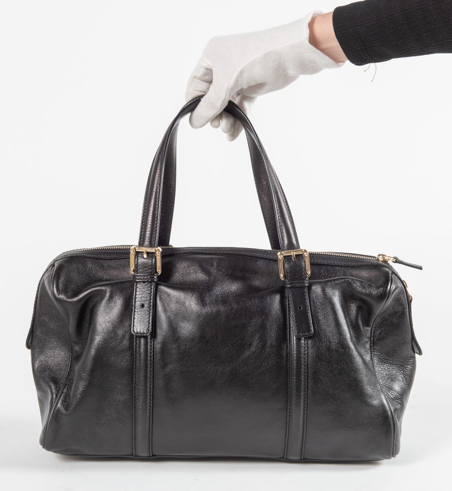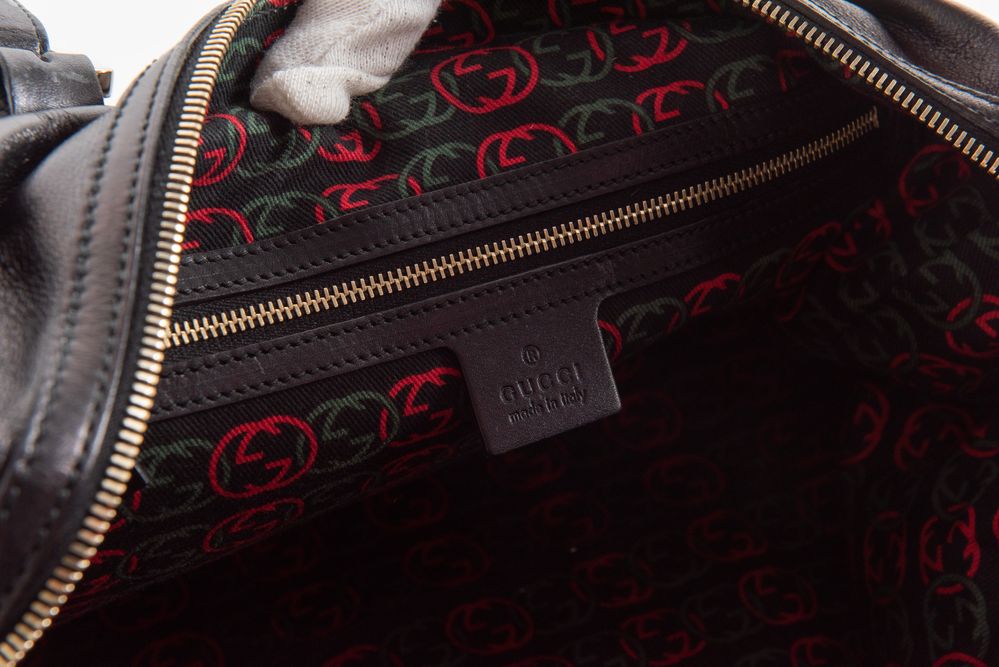GUCCI Borsa da spalla modello Britt Boston in pelle morbida nera rifinita con...