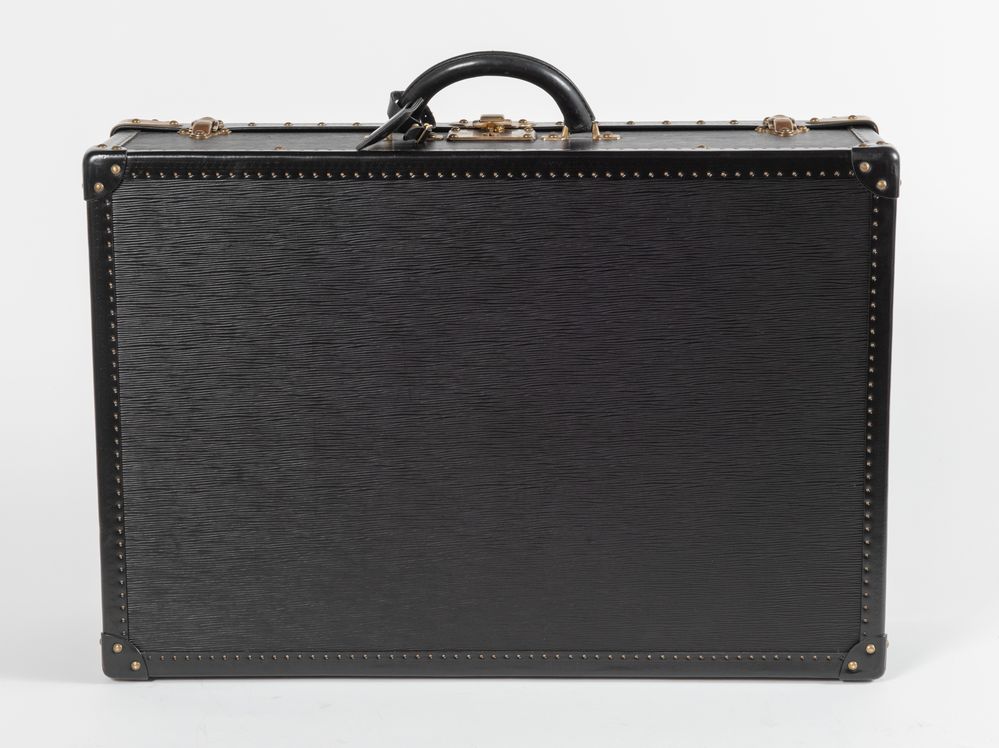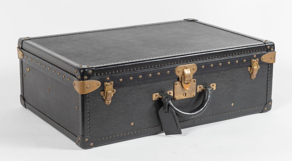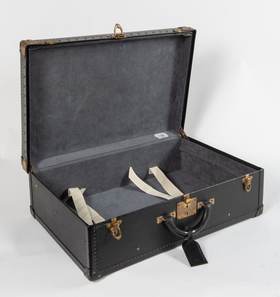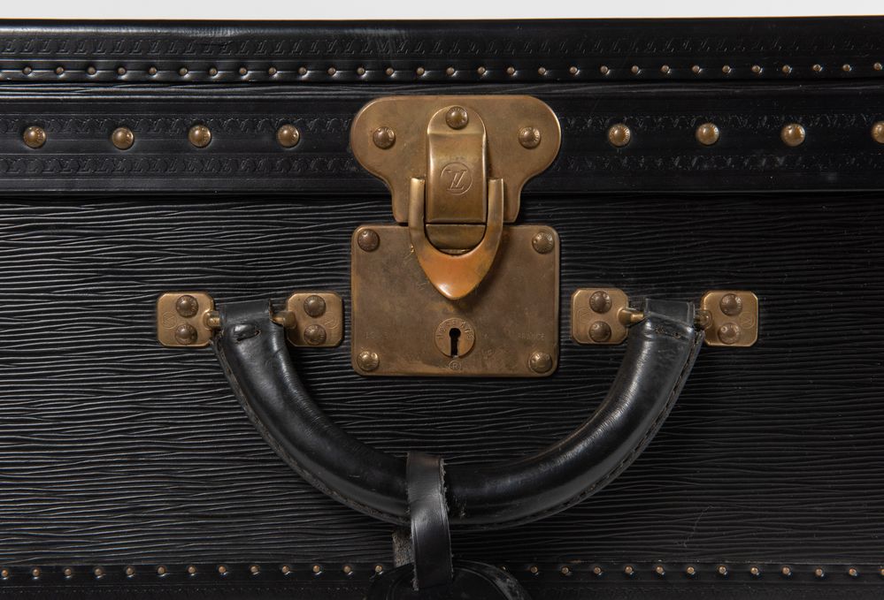 LOUIS VUITTON Baule nero modello Alzer 65 in pelle epi con rifiniture in metallo dorato. Cm 45x65x22. Reca marchi LV, Louis Vuitton, Louis Vuitton Made in France, Louis Vuitton Paris Made in France e codice 1089179 riportato sulla serratura. (Lievi mancanze)