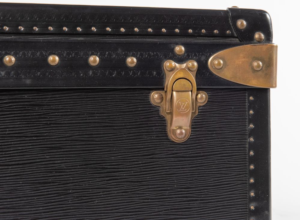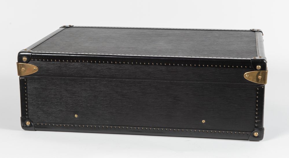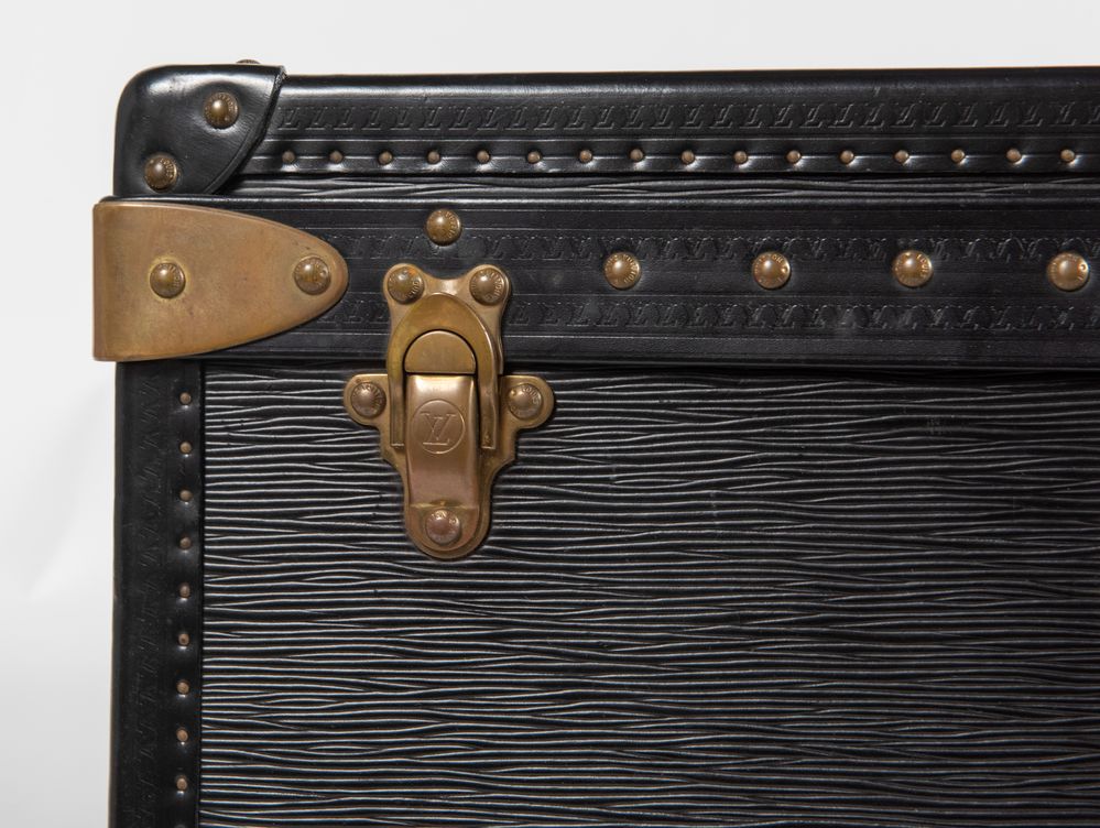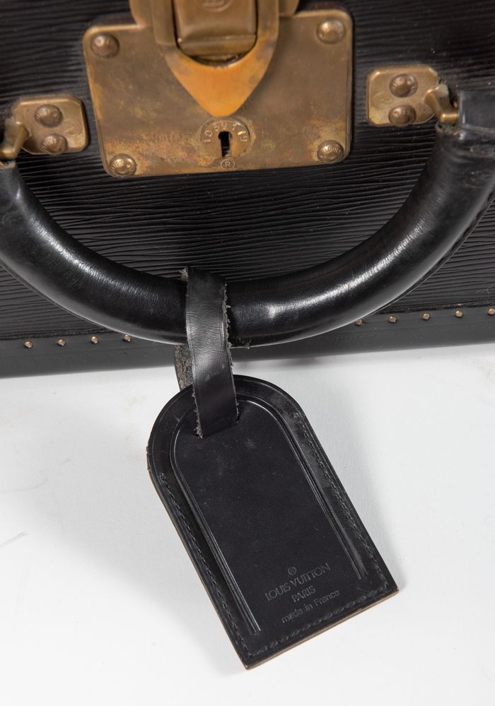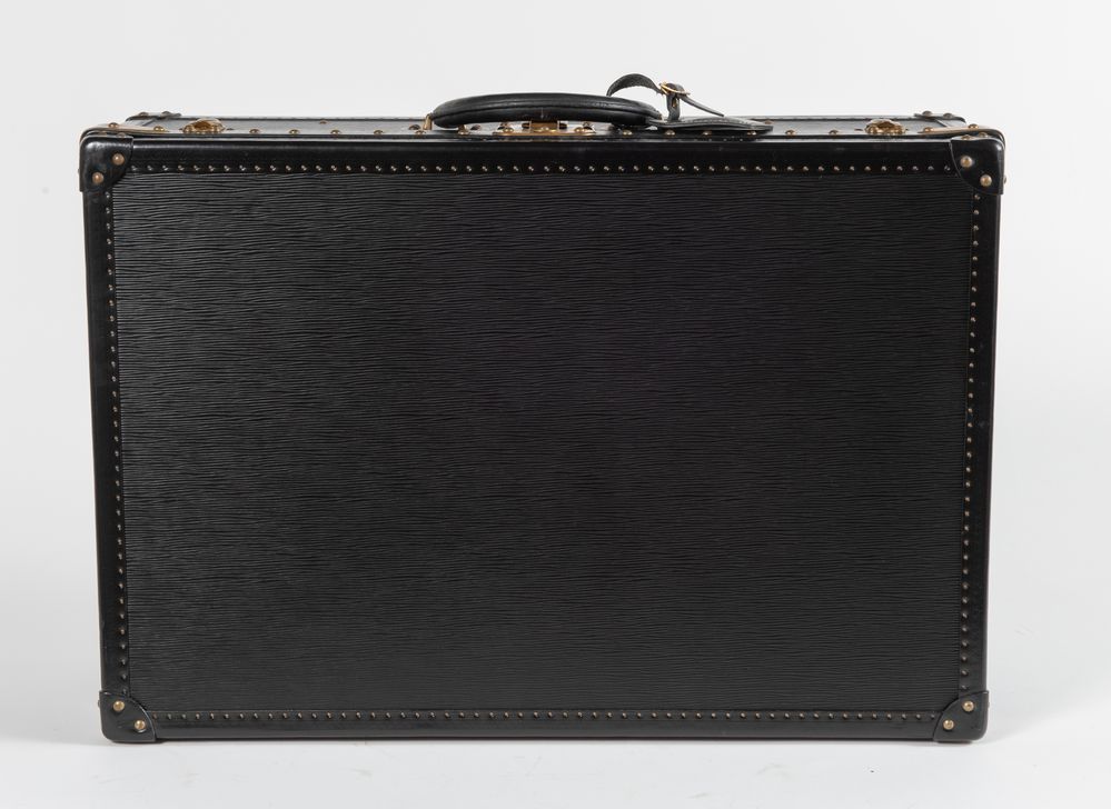 LOUIS VUITTON Baule nero modello Alzer 65 in pelle epi con rifiniture in metallo dorato. Cm 45x65x22. Reca marchi LV, Louis Vuitton, Louis Vuitton Made in France, Louis Vuitton Paris Made in France e codice 1089179 riportato sulla serratura. (Lievi mancanze)