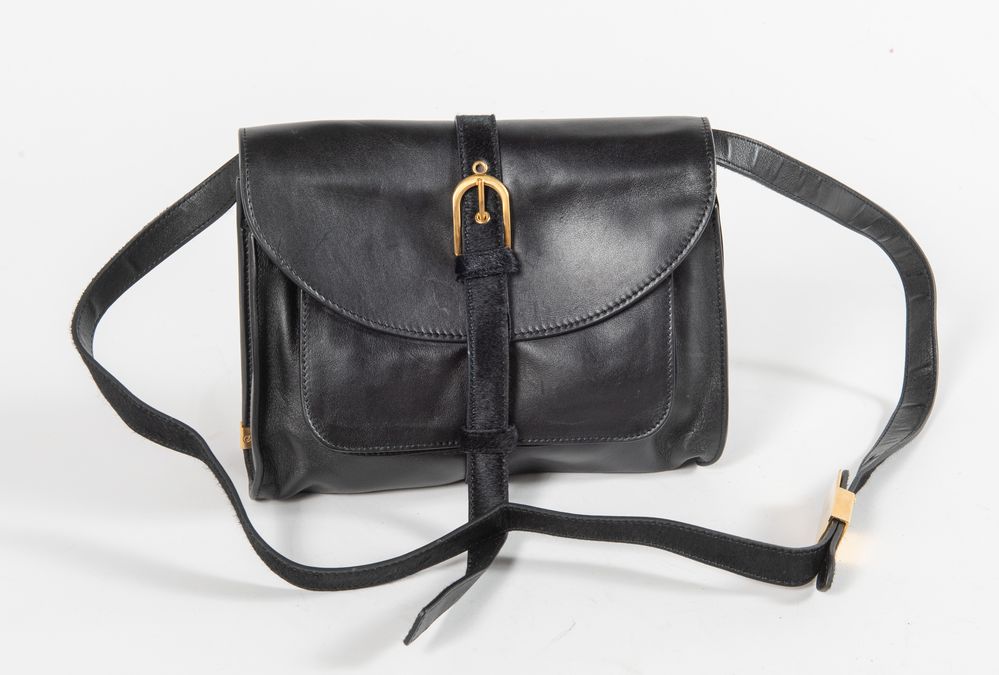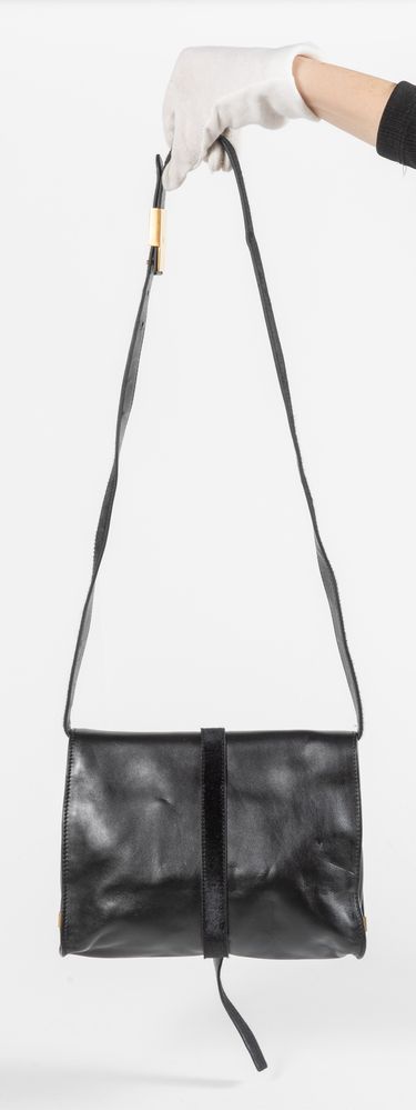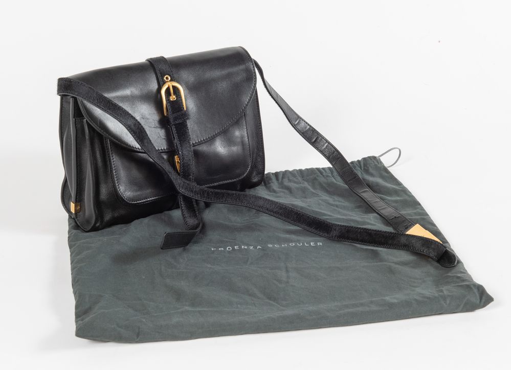 PROENZA SCHOULER Borsa a tracolla in pelle nera con inserti in cavallino e dettagli in metallo dorato. Modello Book Bag. Cm 19x24x6. Lunghezza totale tracolla: cm 110. Interno in tela e pelle con vari vani portaoggetti di cui uno chiuso da cerniera. Reca marchi Proenza Schouler Made in Italy. Accompagnata da etichette Proenza Schouler e corredata di dustbag originale.