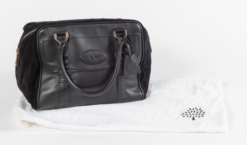 MULBERRY Borsa da spalla in pelle liscia e scamosciata nera con dettagli in metallo dorato. Cm 24x30x20. Altezza con manico: cm 40. Interno rifinito in tela con un vano porta oggetti e una taschina con cerniera. Reca marchi Mulberry ed etichetta Made in Turkey MLC e codice di riferimento. Corredata di dustbag originale. Accompagnata da garanzia Mulberry.