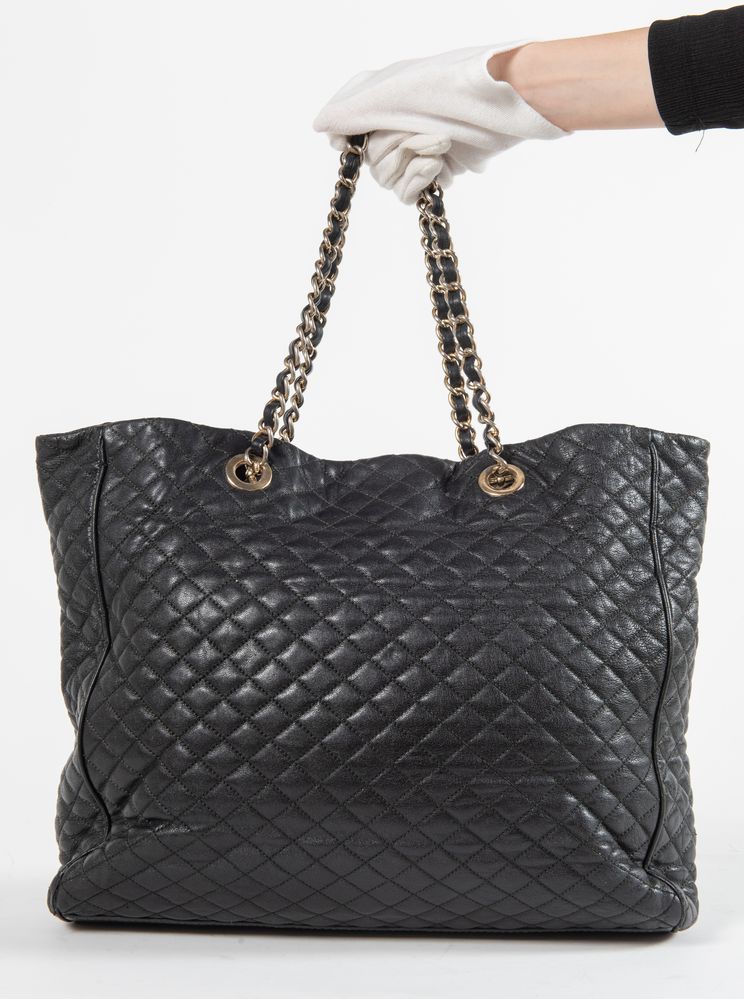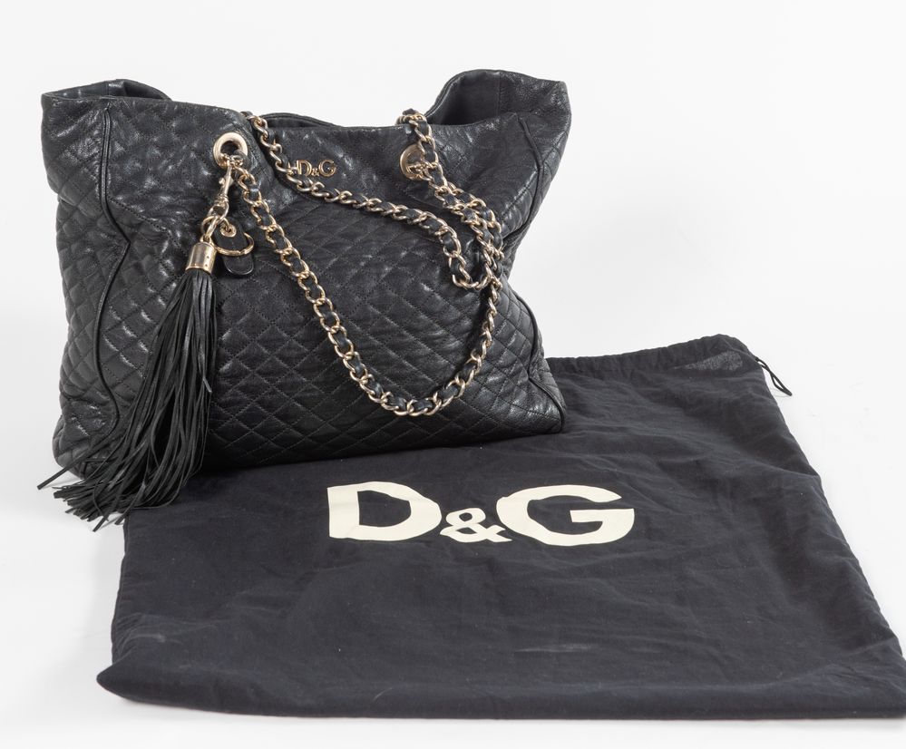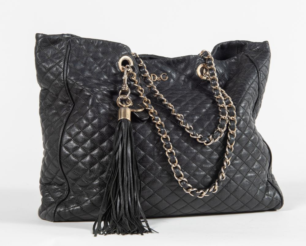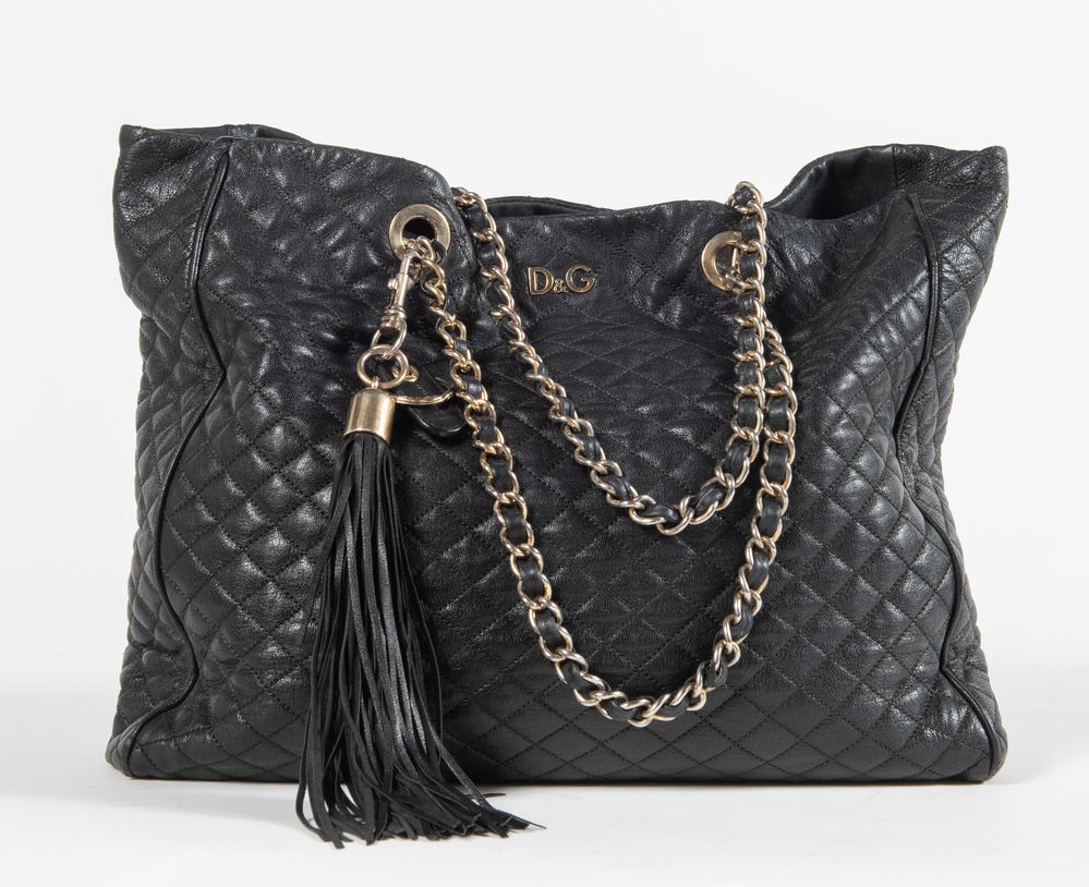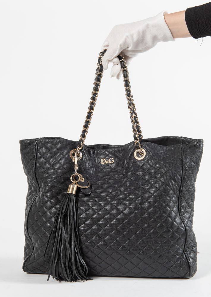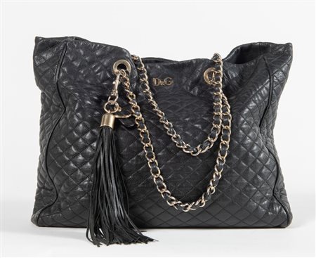 DOLCE & GABBANA Borsa da spalla in pelle nera trapuntata con dettagli in metallo argentato. Collezione Lily Glam. Cm 31x37x10. Altezza con manico: cm 50. Interno in tela beige rifinito in pelle con tasca chiusa da cerniera. Reca marchi D&G, Made in Italy, Bag Lily Glam e D&G Dolce e Gabbana Made in Italy. Corredata di dustbag originale.