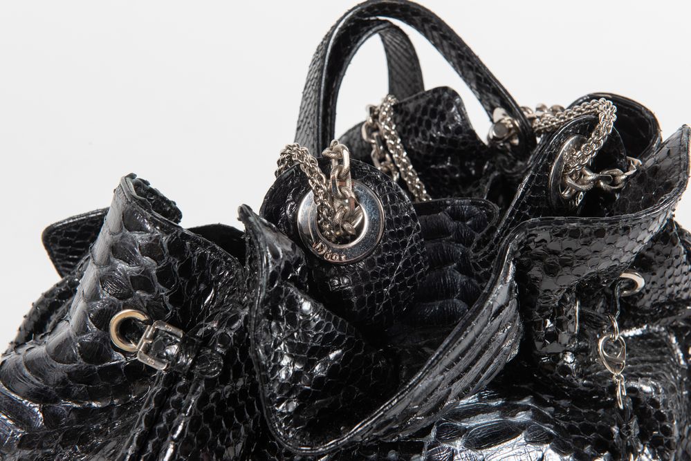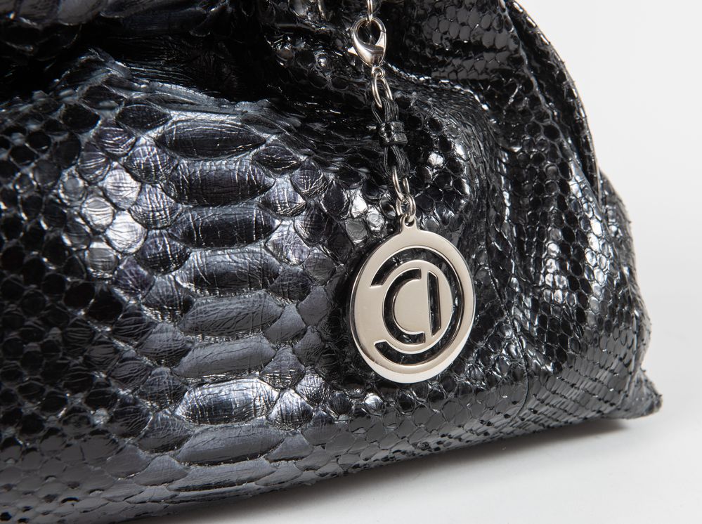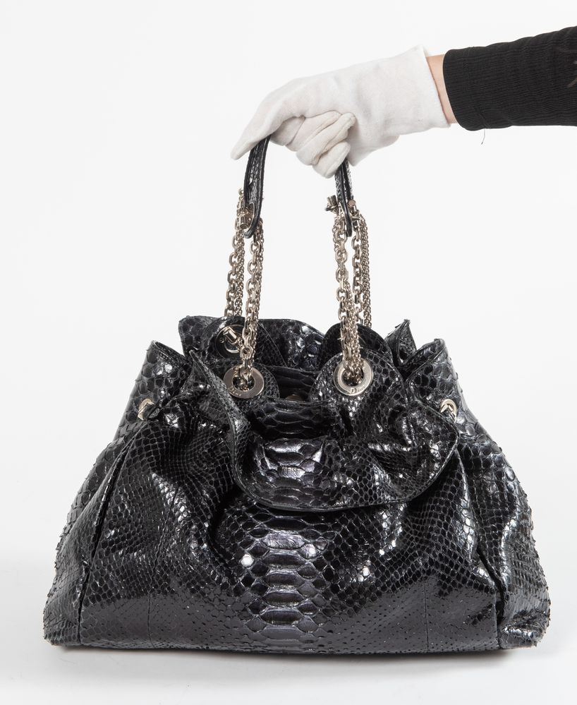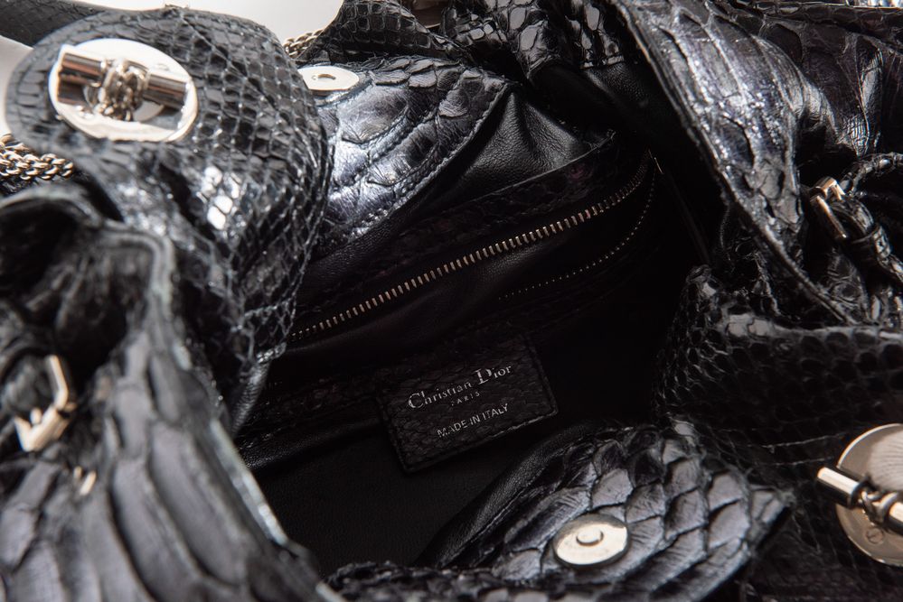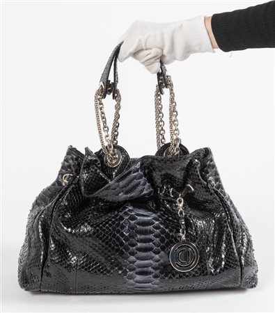 CHRISTIAN DIOR Borsa da spalla modello Le Trente in pelle stampata pitone nera con dettagli e rifiniture in metallo argentato. Cm 25x40x17. Altezza con manico: cm 42. Interno in pelle con tre tasche di cui una chiusa da cerniera. Reca marchi Dior, Christian Dior Paris Made in Italy e codice di riferimento prodotto.