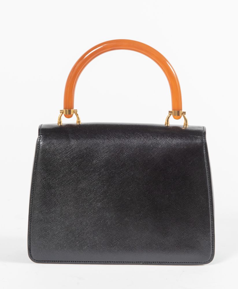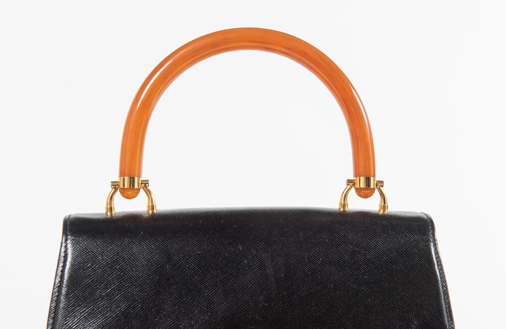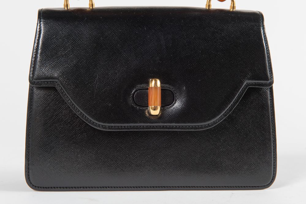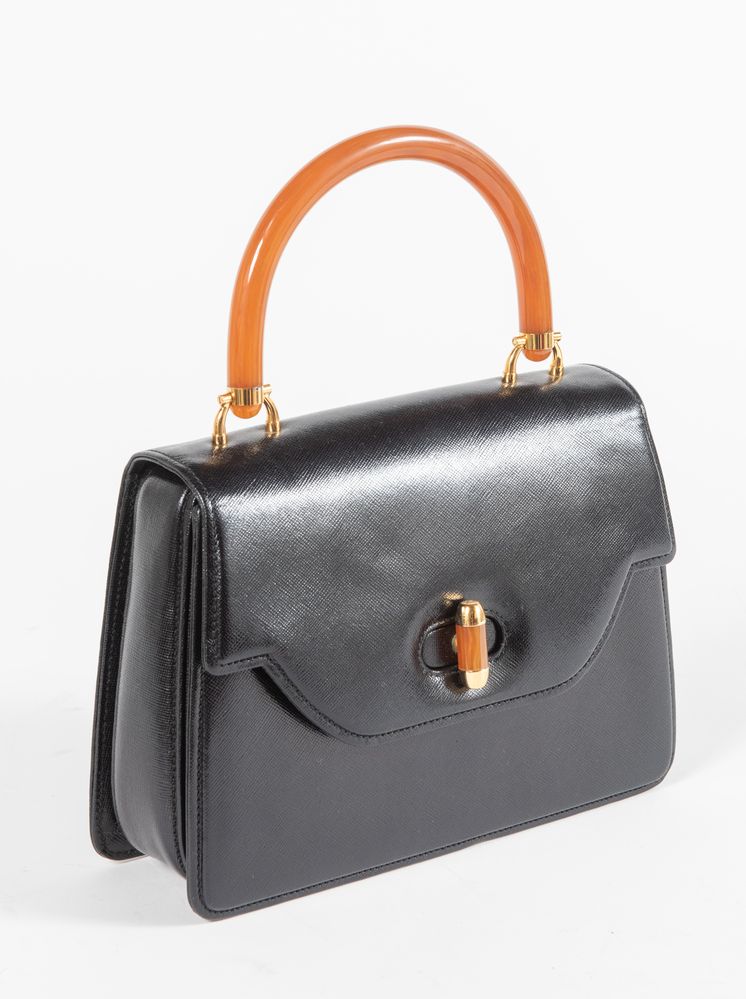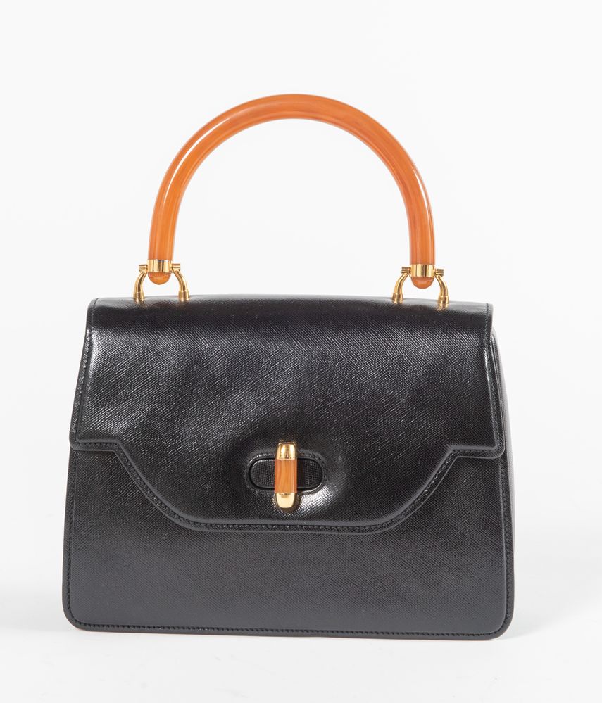 GUCCI Borsa a mano in pelle con manico e chiusura in bachelite. Anni '70 ca....