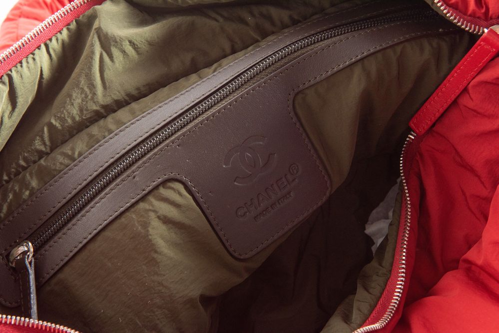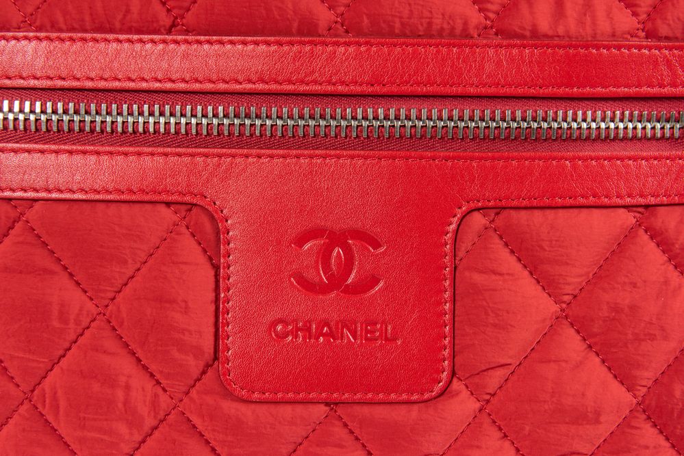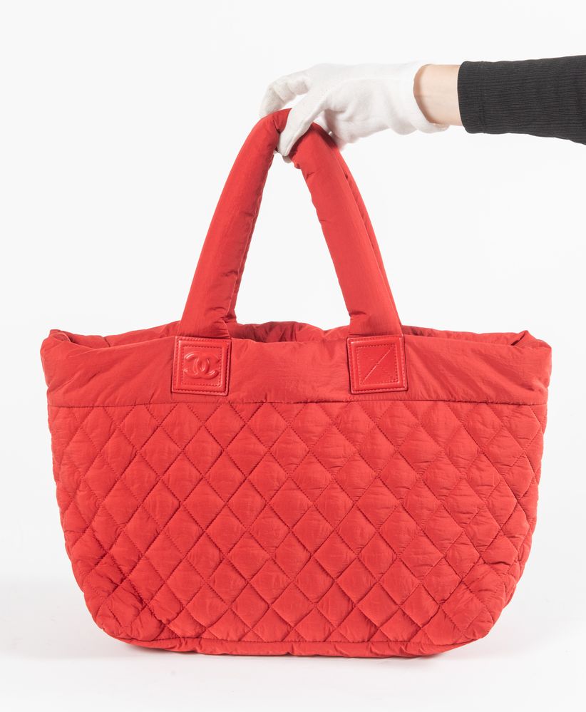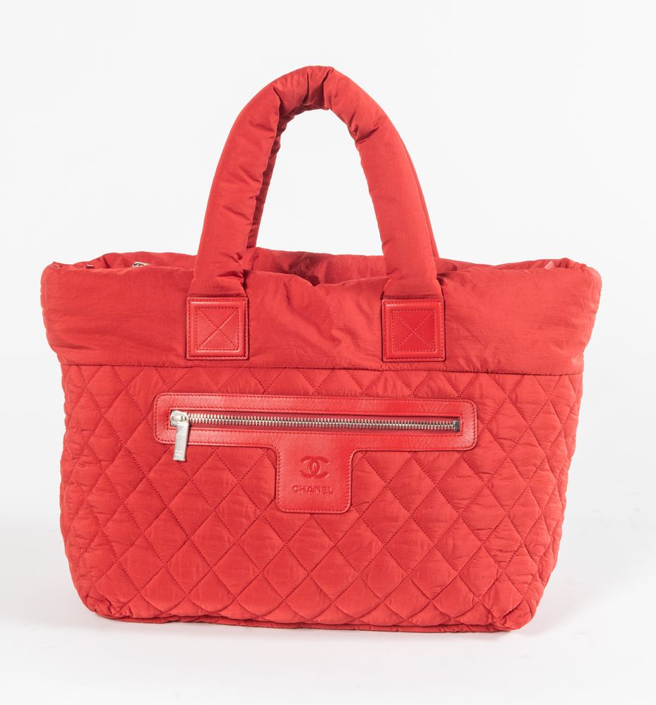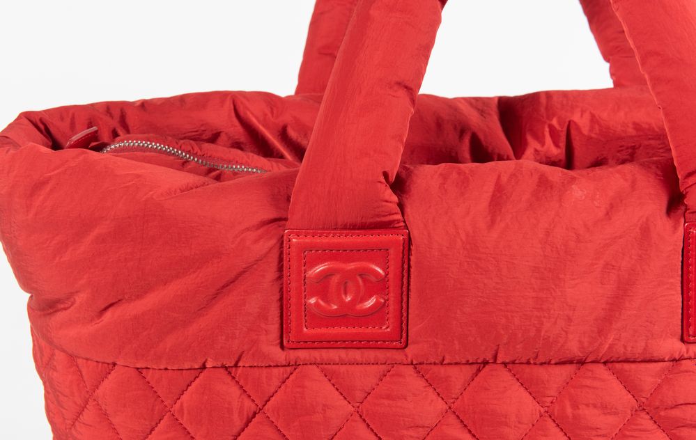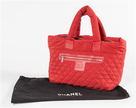 CHANEL Borsa da spalla modello Cocoon in tela imbottita e trapuntata rossa. Cm 30x50x15. Altezza con manici: cm 53. Interno in tela con tasca chiusa da cerniera e laccetto portachiavi. Reca marchi CC Chanel, Chanel Made in Italy e codice di riferimento prodotto. Accompagnata da carta di autenticità con numero di riferimento prodotto e certificato. Corredata di dustbag original.