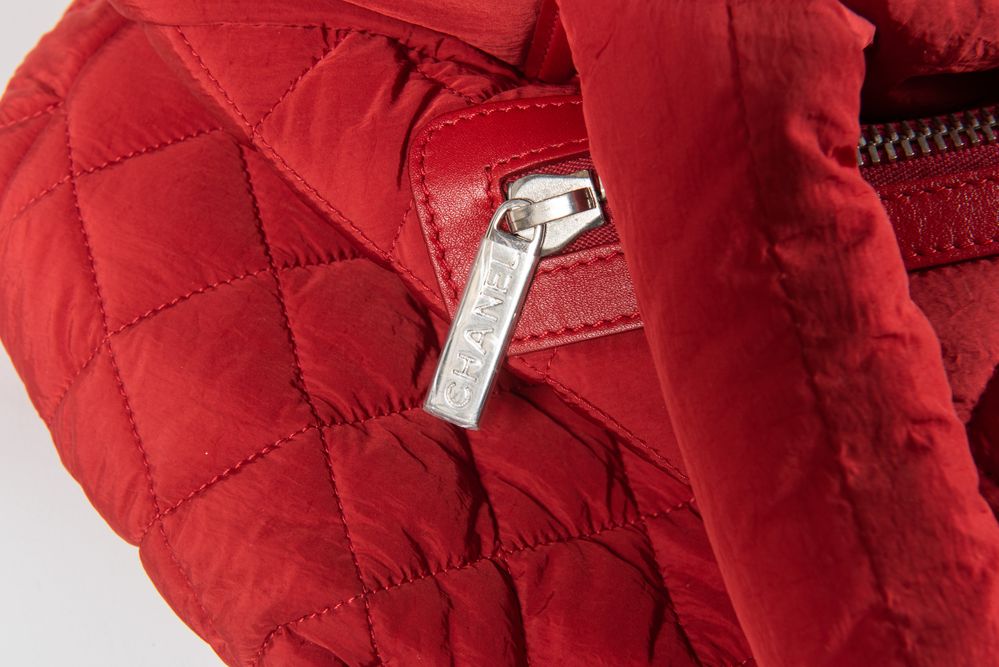 CHANEL Borsa da spalla modello Cocoon in tela imbottita e trapuntata rossa....
