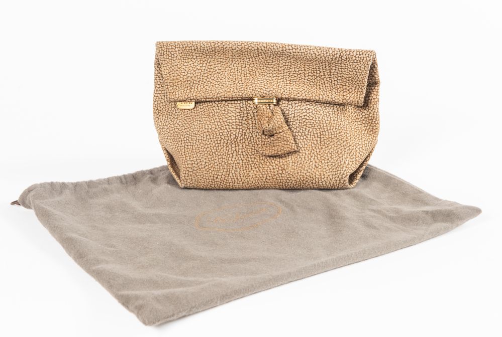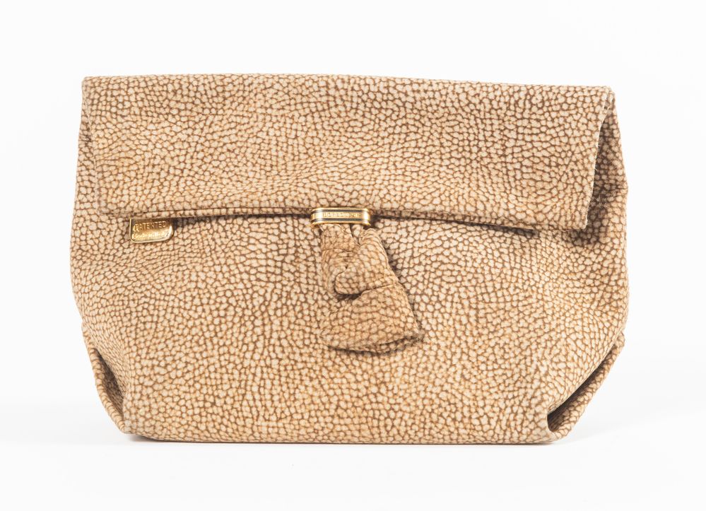 BORBONESE Pochette in tapiro. Anno 1988. Cm 17,5x25x11. Reca marchi Borbonese by Redwall, Patented Made in Italy e codice riferimento prodotto. Corredata di dustbag originale.
