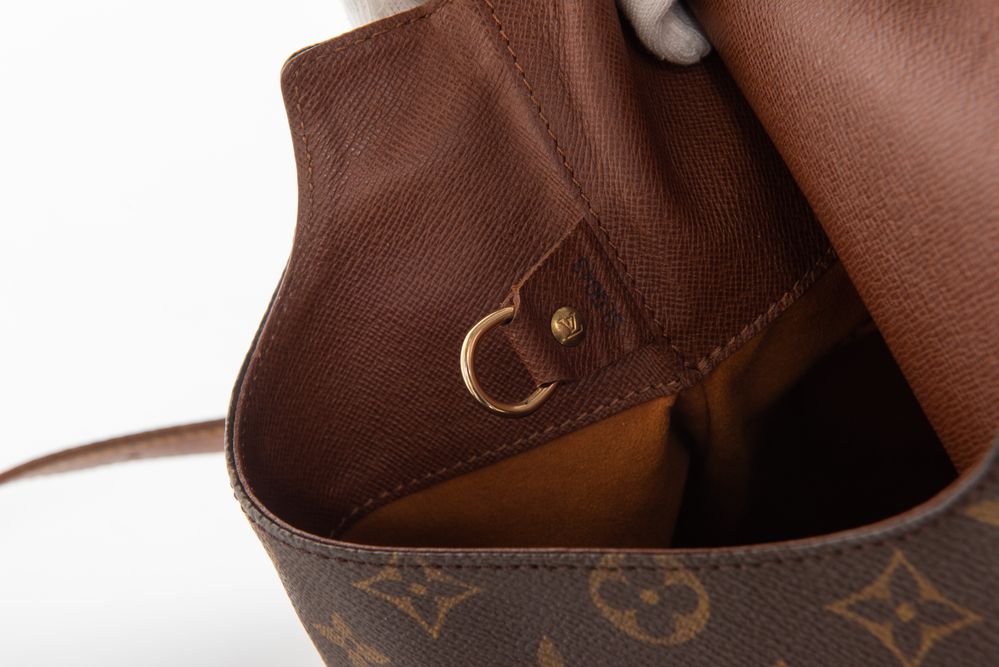 LOUIS VUITTON Borsa da spalla modello Musette in tela monogram con rifiniture in pelle e dettagli in metallo dorato. Cm 36x31x5. Tracolla regolabile di cm 110. Interno in tela con due tasche e un'anellina portachiavi in metallo dorato. Reca marchi LV, Louis Vuitton Paris Made in France e codice di riferimento prodotto.