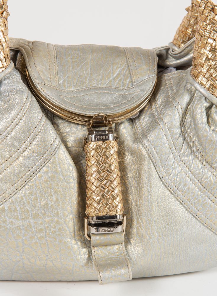 FENDI Borsa a mano modello Spie in pelle oro e argento cangiante. Dettagli e...