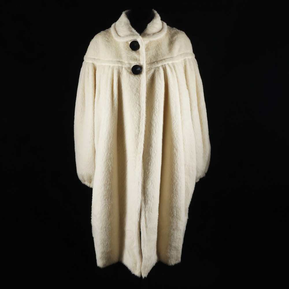 Christian Dior cappotto di lana mohair bianca con carré e maniche arricciate