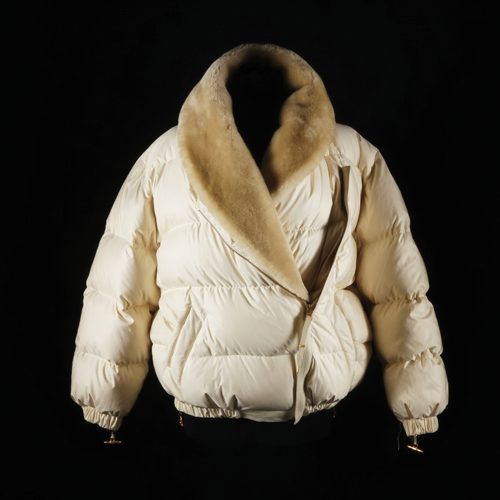 Christian Dior piumino color avorio con collo di pelliccia rasata staccabile, tg. M
