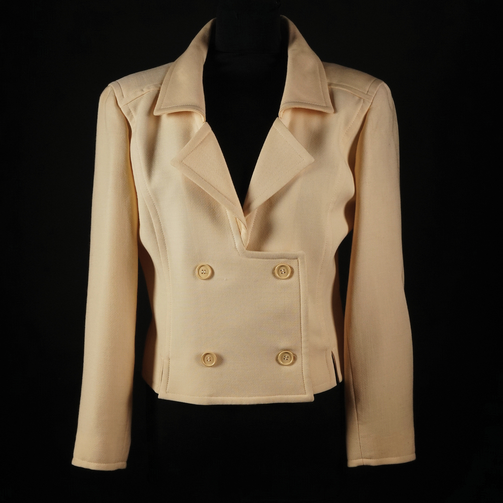 Courrèges giacca in crêpe di lana bianco panna, tg. 38