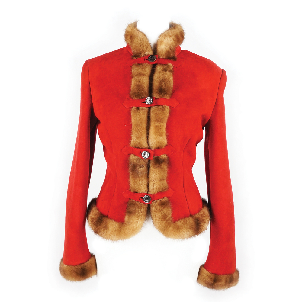 Valentino giubbino in pelle di montone rosso con bordi di visone naturale