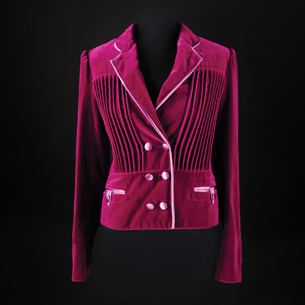 Lotto 84 | Yves Saint Laurent giacca in velluto misto seta color ciclamino con profili...