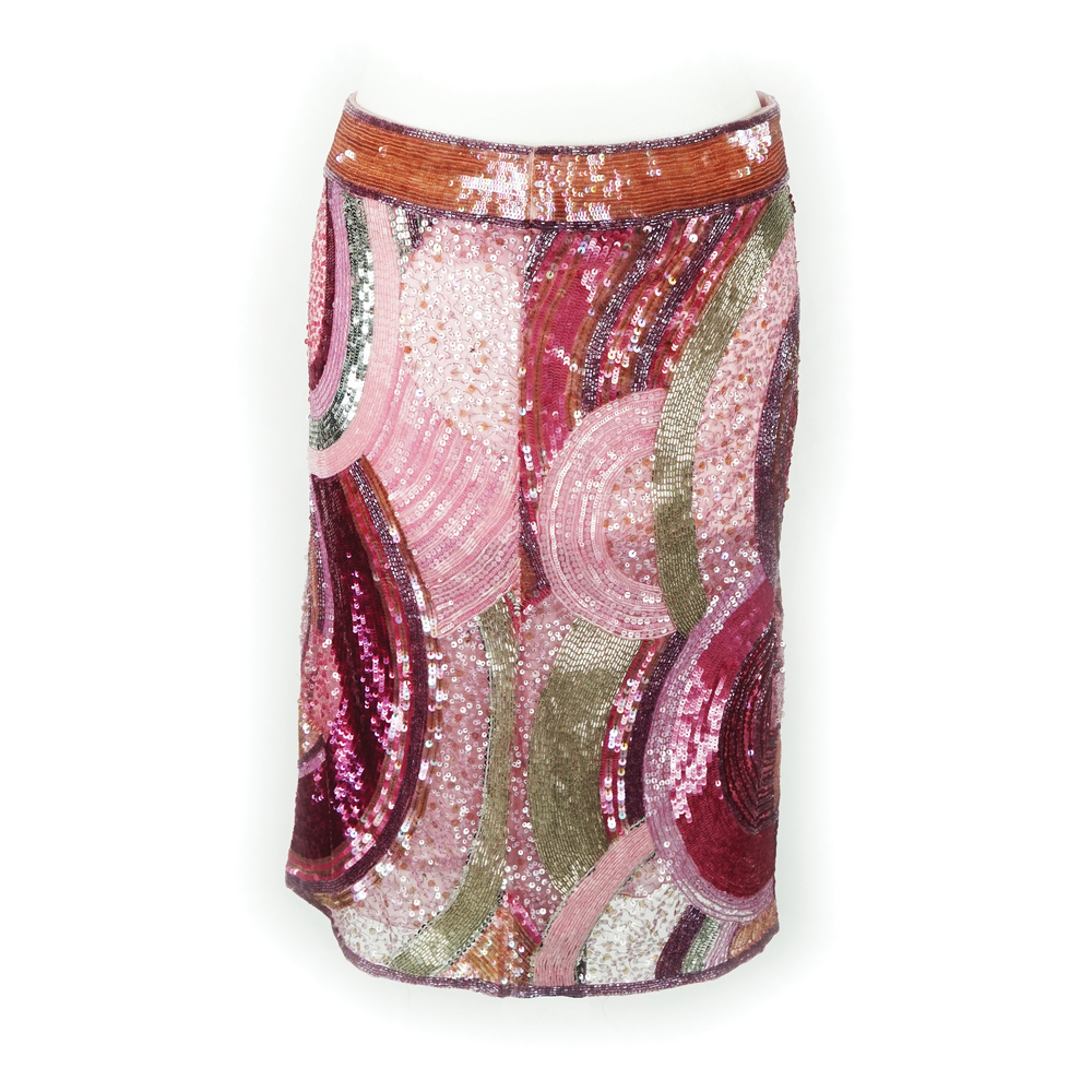 Valentino gonna in seta e paillettes nei toni del rosa, argento e viola...