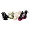 Christian Dior quattro paia di sandali da sera dei quali uno in pelle laminata rosa, tg. 37,5, uno in pelle laminata verde, tg. 38, uno in raso nero, tg. 37 e uno in raso nero e suede fucsia, tg. 37