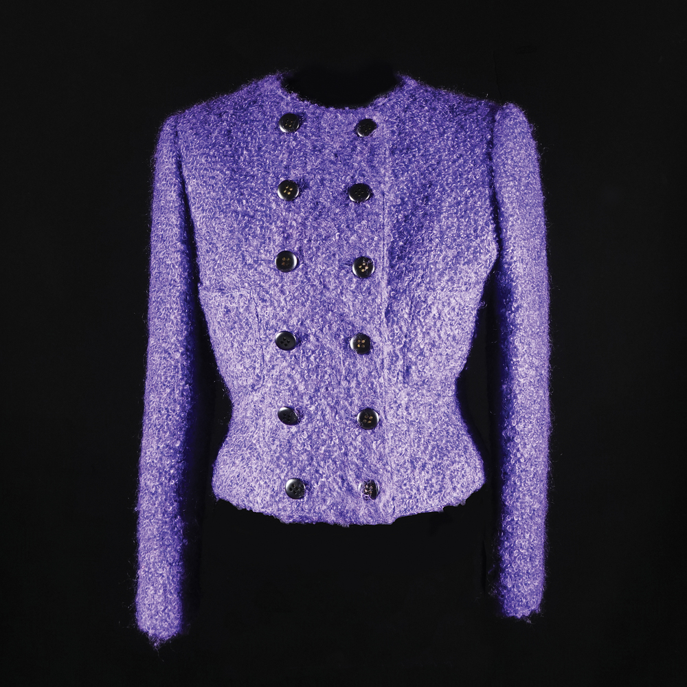 Lotto 111 | Valentino giacca corta a doppio petto in lana bouclé viola, tg. 42