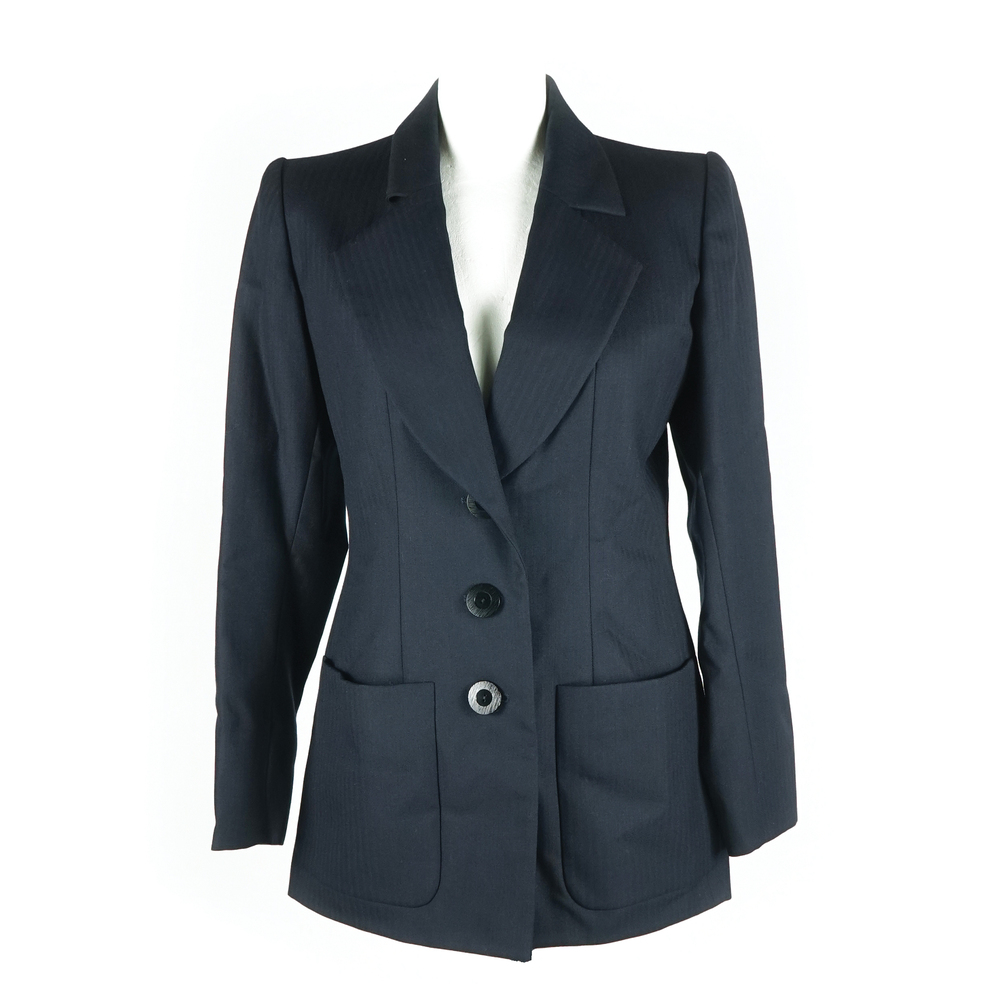 Yves Saint Laurent blazer in gabardine spinato blu con tasche a toppa
