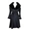 Christian Dior cappotto avvitato in misto lana e cashmere blu con ampio collo staccabile di pelliccia, tg. F 38