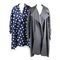 Nina Ricci caban in tessuto blu a pois bianchi UNITO ad altro dello stesso modello in tessuto nero a righe bianche (quest'ultimo privo di etichetta)