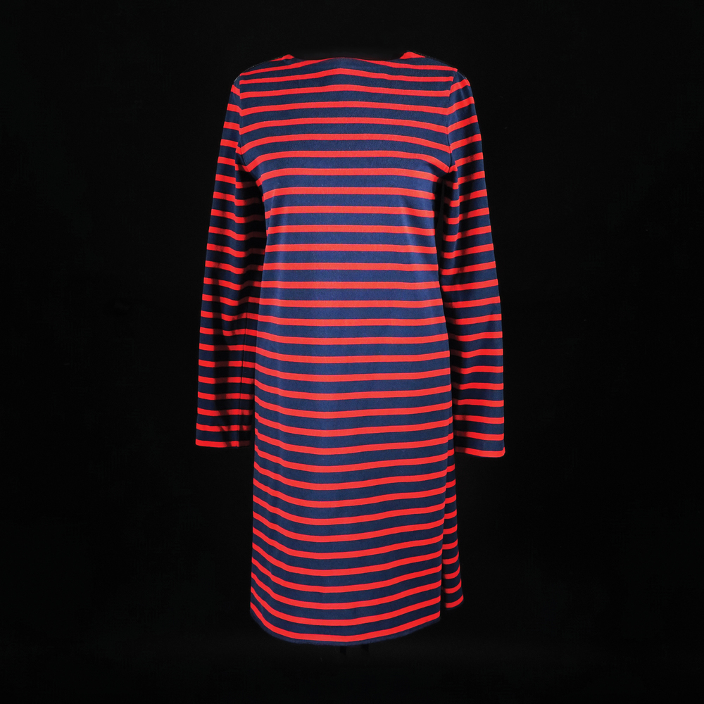 Céline abito in maglina di cotone blu a righe orizzontali rosse con zip sulle spalle, tg. S