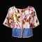 Valentino giacchino in raso di seta rosa e blu a rami di rosa nei toni...