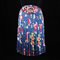 Valentino giacchino in raso di seta rosa e blu a rami di rosa nei toni predominanti del rosa, doppiato in seta a motivi floreali su fondo blu, tg. 6 UNITO a gonna a pieghe dello stesso tessuto dell'interno; cintura arricchita da una composizione floreale di paillettes e cordoncino fucsia, tg. 6.