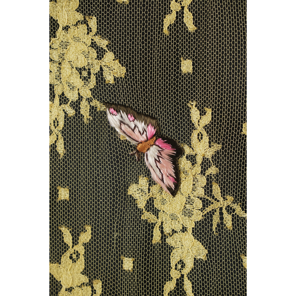 Valentino stola in pizzo giallo con frange, arricchita da mazzi di fiori di...