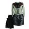 Balenciaga camicia di seta nera, grigia e bordeaux, tg. 38 (Le dix Balenciaga) UNITA a una gonna nera con alto bordo bianco e una gonna a balze in seta nera con elastico in vita, tg. 40 (quest'ultima con la marca presente solo nell'etichetta della composizione)