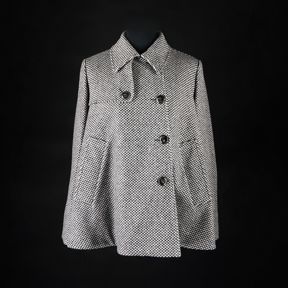Christian Dior giaccone in lana e angora "occhio di pernice"; fodera in seta e bottoni logati, tg. F 36