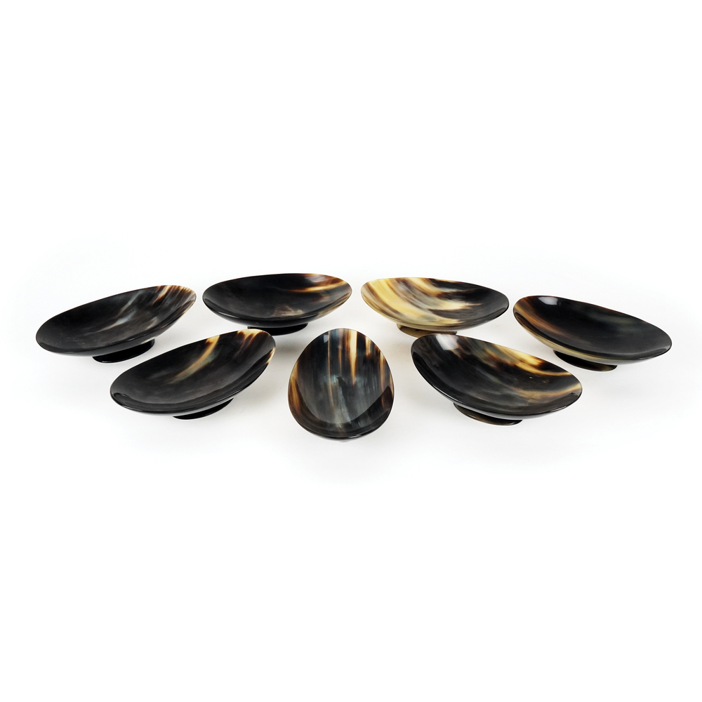 Sette vaschette a barchetta in corno, cm. 5x20x12