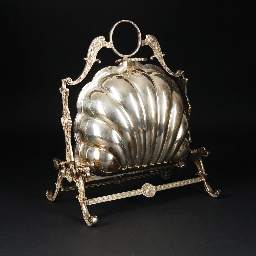 Portabonbons in metallo di Sheffield sbalzato a valve di conchiglia...