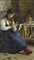 Gaetano Esposito (Salerno, 1858 - Sala Consilia, 1911) IL LAVORO A MAGLIA Olio su tela, cm. 86,5x50 Firma in alto a destra. Sul verso: Etichetta Galleria d’Arte V. Spezzacatene, Montecatini.