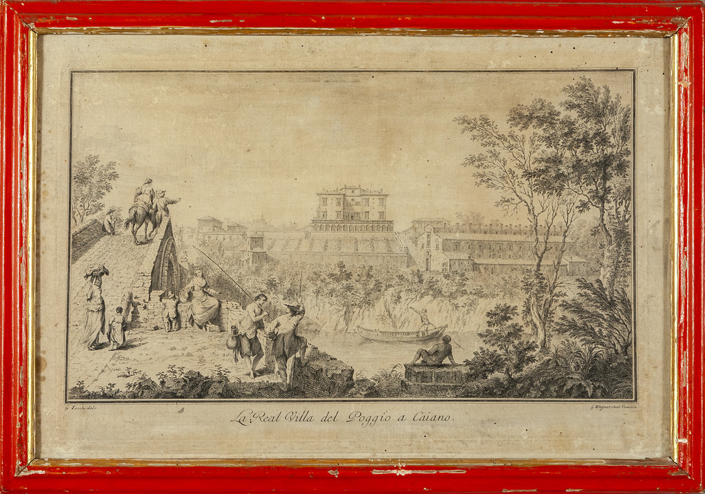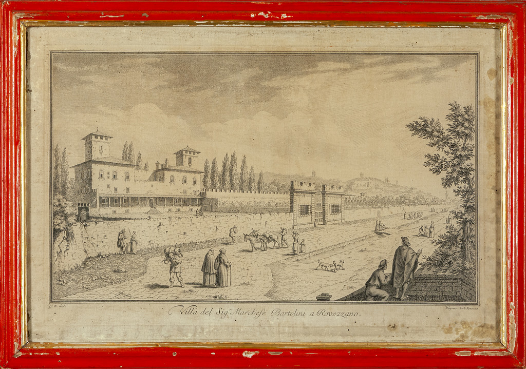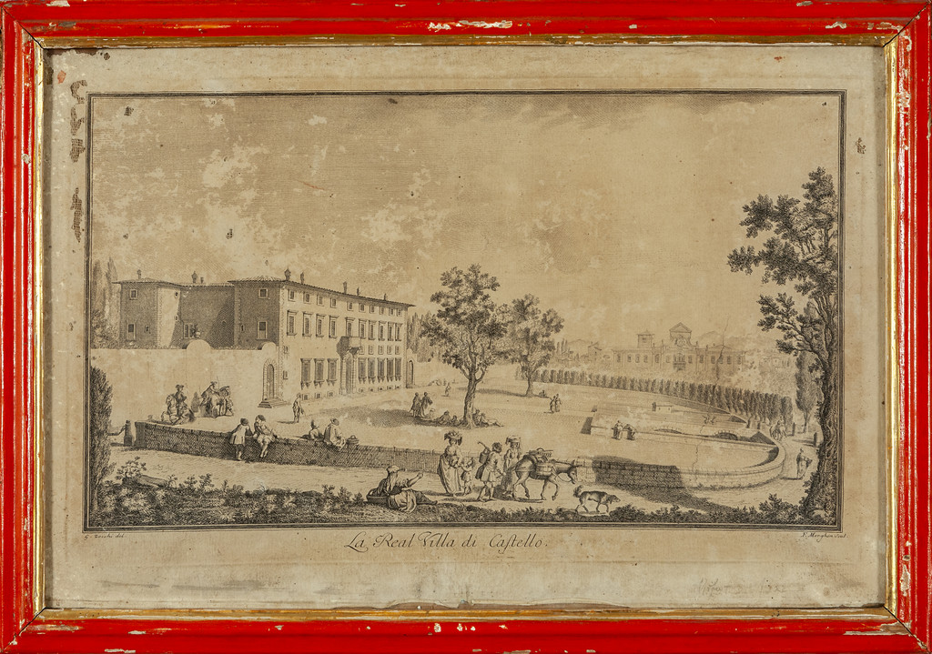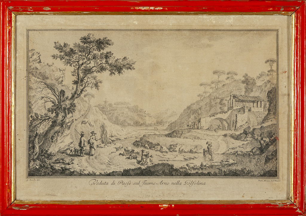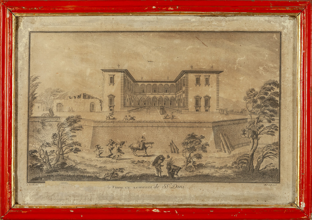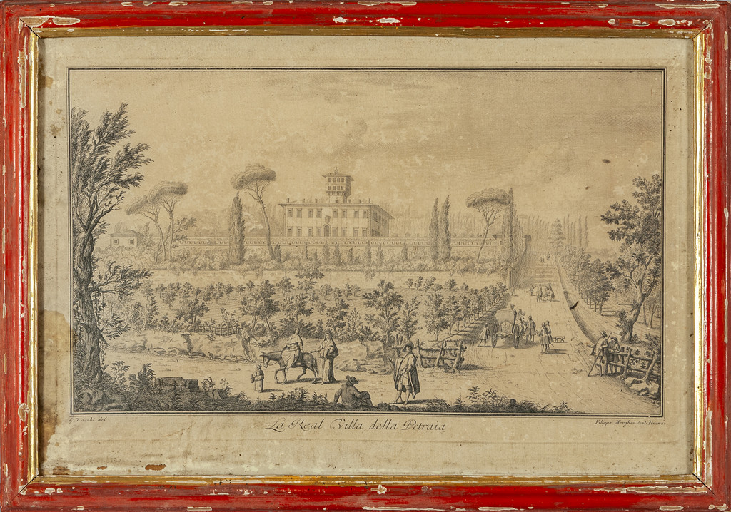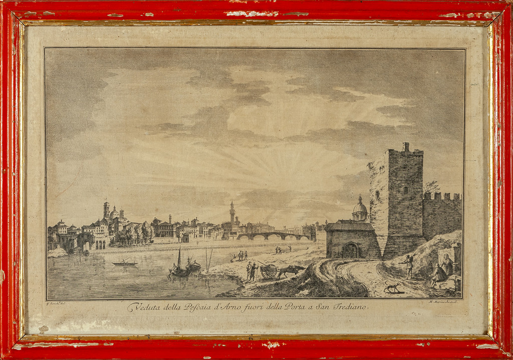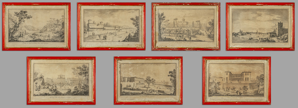 G.Zocchi 'Vedute fiorentine' sette stampe cornici di epoca in legno rosso con bordino dorato