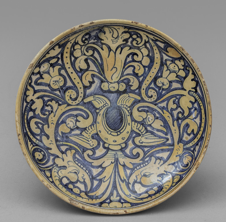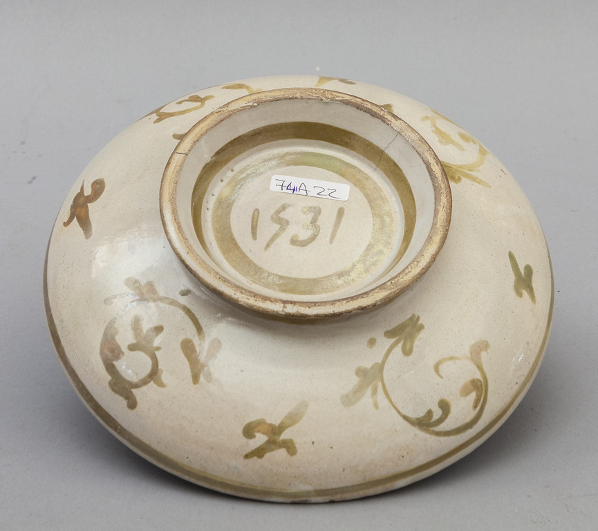 Coppa a fondo concavo in maiolica lustrata datata nel retro 1531 Deruta sec.XVI