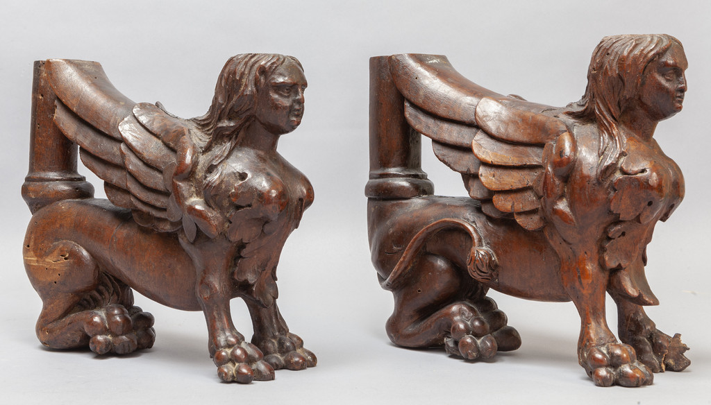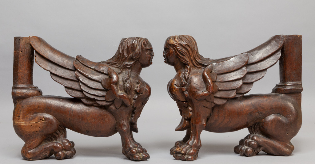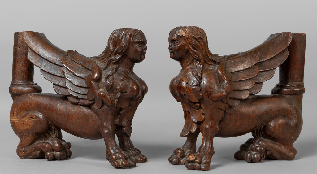 Coppia di sfingi in noce finemente intagliato Venezia sec.XVI