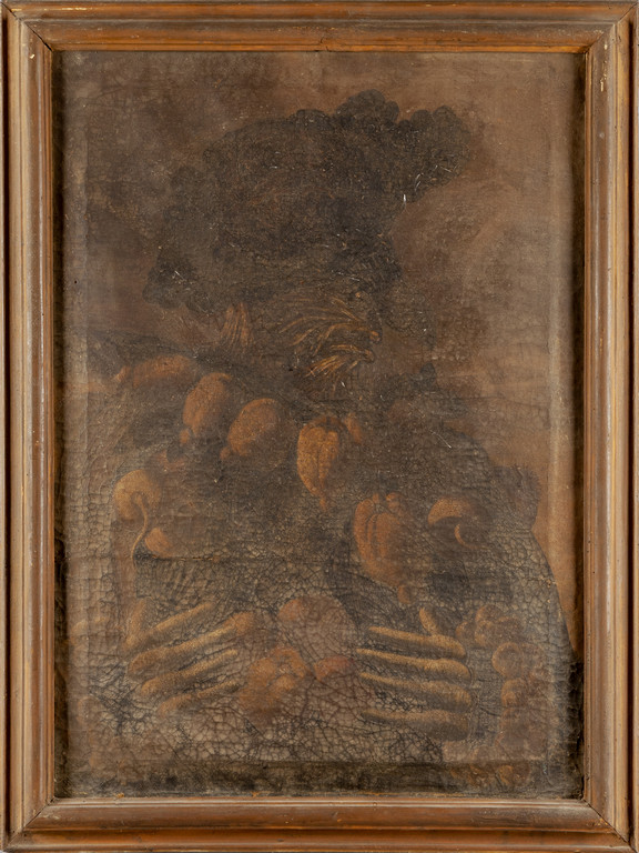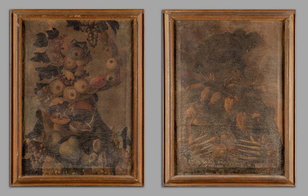 Scuola lombarda sec.XVII 'Teste composte' coppia di olii cornici coeve (cattivo stato)