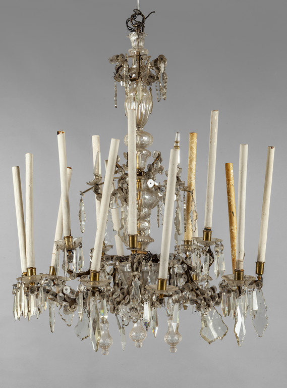 Grande lampadario a quindici luci in cristallo e ferro fusto in cristallo Venezia sec.XVIII