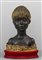 scultura in bronzo a patina scura con base e capelli dorati base in velluto rosso