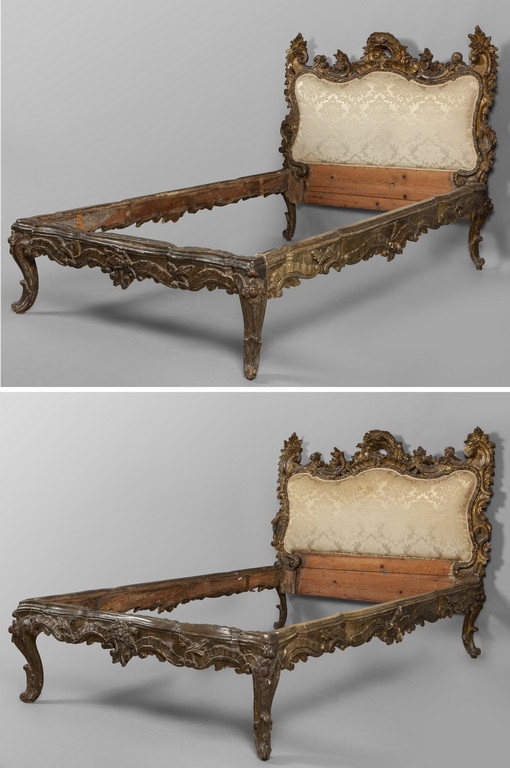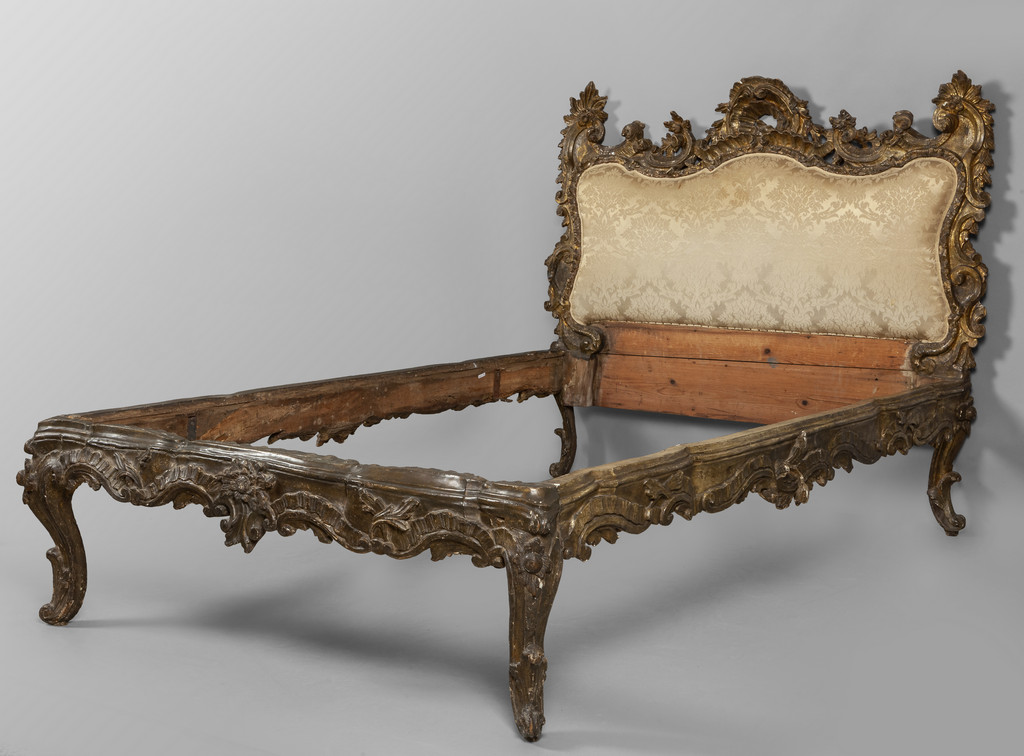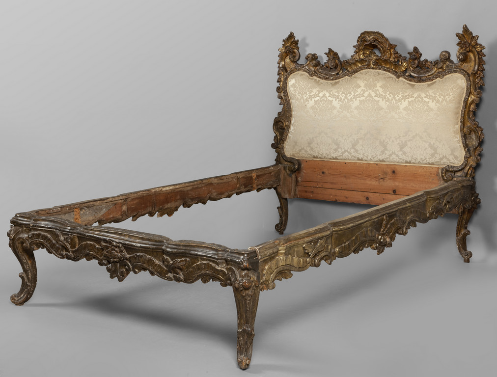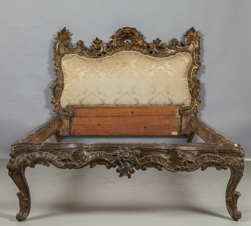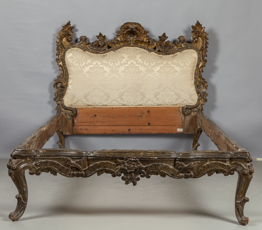 Coppia di letti in legno finemente intagliato e dorato a mecca Sicilia I metà sec.XVIII