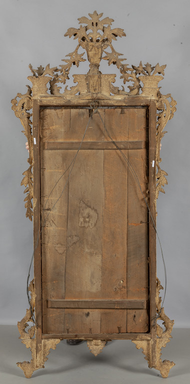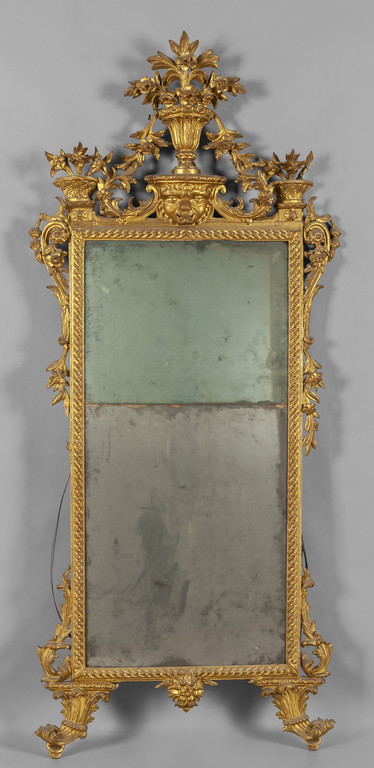 Specchiera Luigi XVI in legno intagliato e dorato cimasa con mascherone e ghirlande di fiori Toscana II metà sec.XVIII