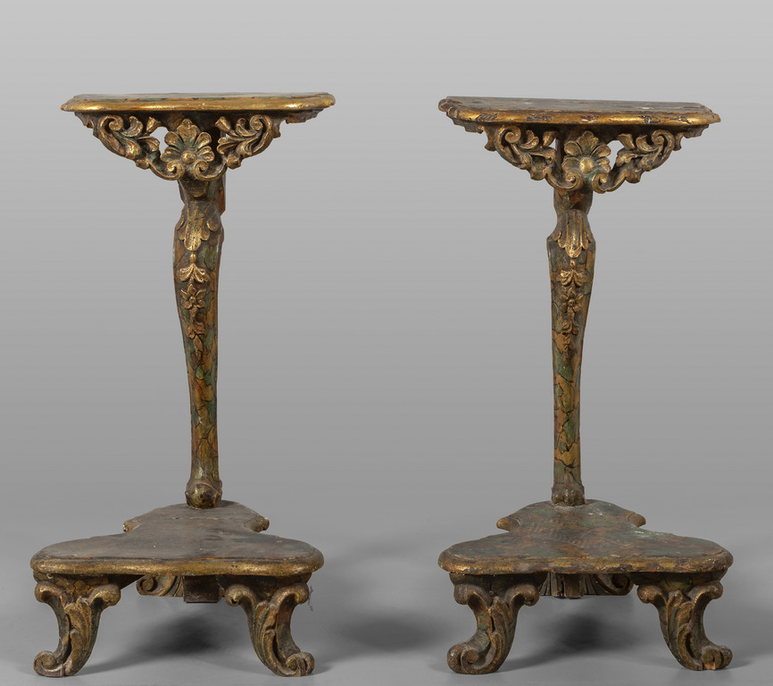 Coppia di gueridons con inginocchiatoio in legno intagliato laccato e dorato Roma I metà sec.XVII