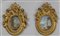 Scuola romana sec.XVIII 'Paesaggi marini animati con rovine e personaggi' coppia di tempere di forma ovale bellissime cornici coeve in legno finemente intagliato e dorato