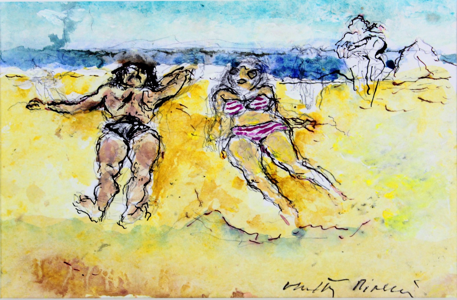PIACESI WALTER Ascoli Piceno 1920 “La coppia” china e acquerello su carta cm 16x24,5 del 2005. Firmato sul fronte in basso a sinistra. Autentica su foto.