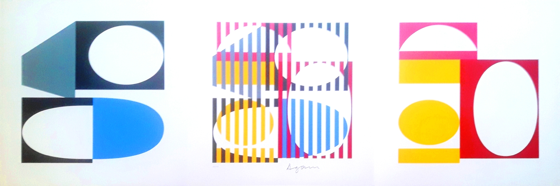 AGAM YAACOV Rishon LeZion 1928 “Senza titolo” serigrafia su cartone Fabriano cm 203x68. Firma e tiratura 46/125 a matita sul fronte in basso al centro. Facente parte della cartella “Exacta- dal costruttivismo all’arte sistematica 1918-1885” edita da Squatriti.