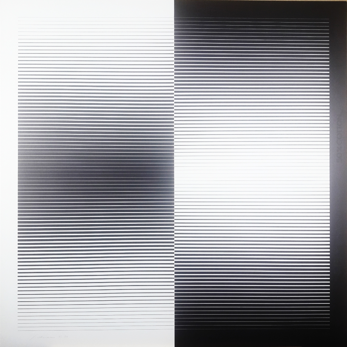 ALVIANI GETULIO Udine 1939-Milano 2018 “Senza titolo” serigrafia su cartone Fabriano cm 68x68 del 1962/84. Firmata e datata a matita sul fronte in basso a sinistra, tiratura 46/125 a destra. Facente parte della cartella “Exacta- dal costruttivismo all’arte sistematica 1918-1885” edita da Squatriti.