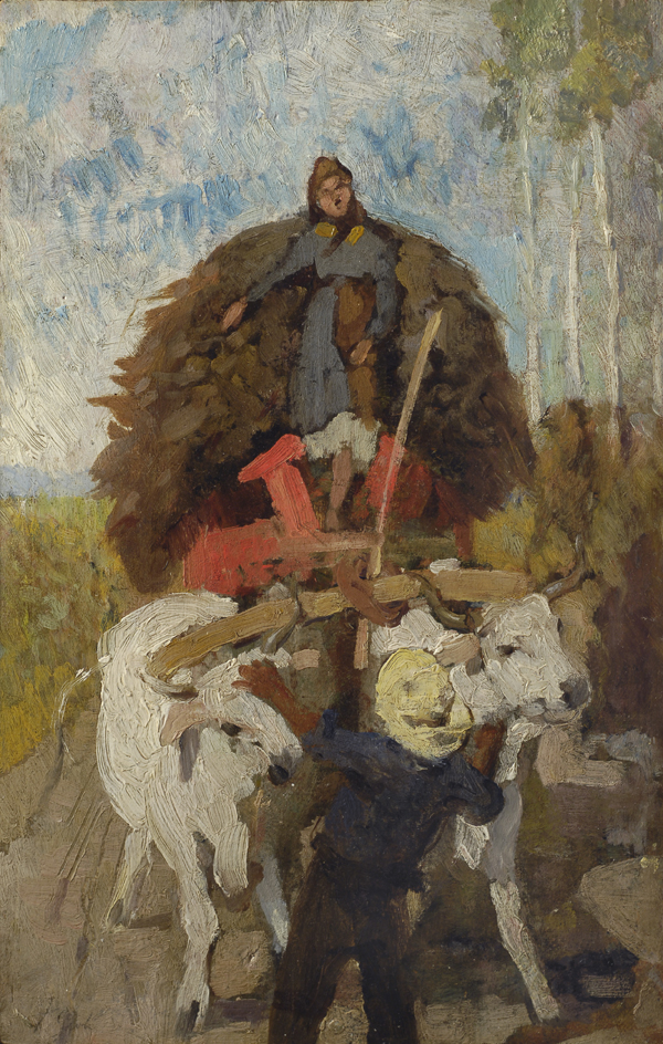 Francesco Gioli (San Frediano a Settimo, 1846 - Firenze, 1922) IL GUADO Olio su tavola, cm. 36x22,5 Firma in basso a sinistra.