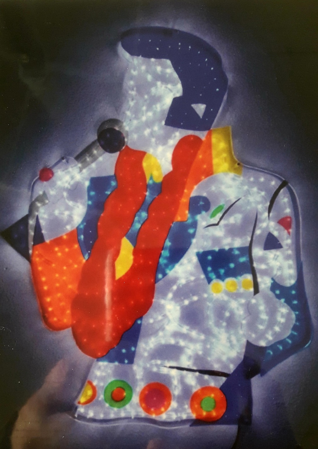 LODOLA MARCO Pavia 1955 “Elvis Presley” perspex e neon inserito all’interno di 2 lastre di plexiglass sagomate cm 103x77x7,5. Autentica su foto.