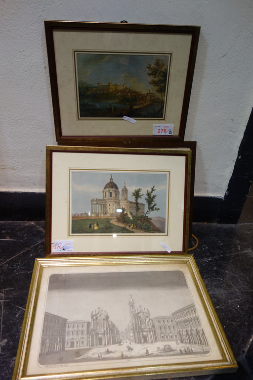 Tre stampe raffiguranti vedute di Torino ed una raffigurante Alessandria